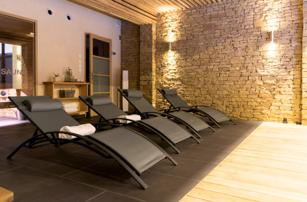 Offrez ou offrez-vous une parenthèse bien-être et détente dans notre espace de 150 m2, aménagé dans le cuvage et profitez de la piscine 8 x 4 mètres avec nage à contre-courant mais aussi du sauna, du hammam et du spa en bois.